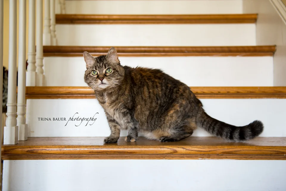 Since Izzy's not a senior dog, I photographed Lucy, a senior cat who I've known for many years. She's lost her hearing in the last couple of years. When I saw her recently, I noticed that her appetite isn't as good as it once was. But she's still her usual sociable self, talking to me from the moment I walk in the door until I sit down and start petting her. She's an easy cat to photograph as she'll follow her food anywhere!