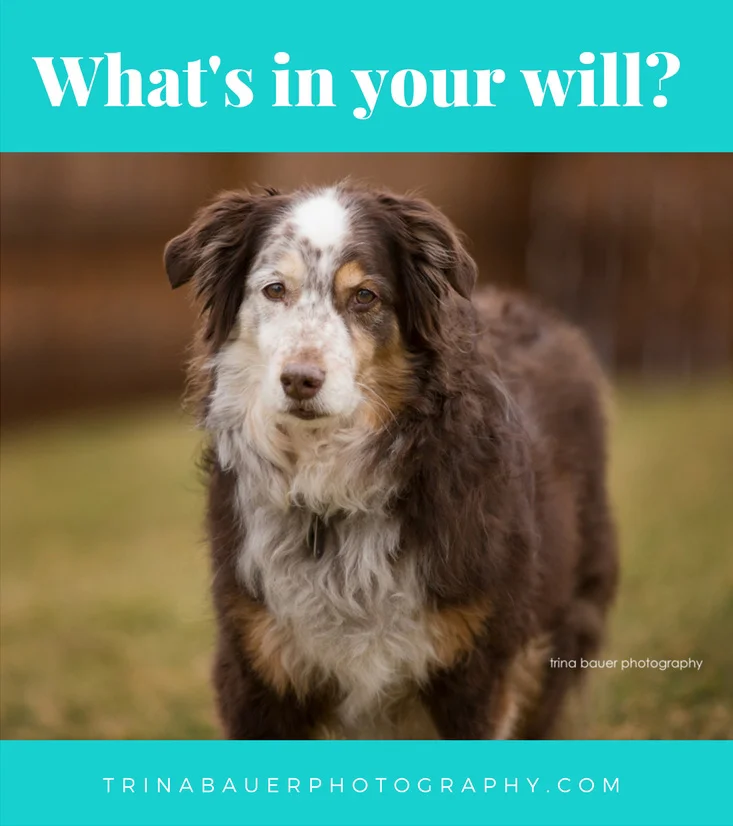When her family came into town, they found a will my friend had drawn up, but there was nothing in it about her dog. My friend and I had talked about this a couple of times, but neither of us believed our dogs would outlive us. And really, who wants to talk about death?