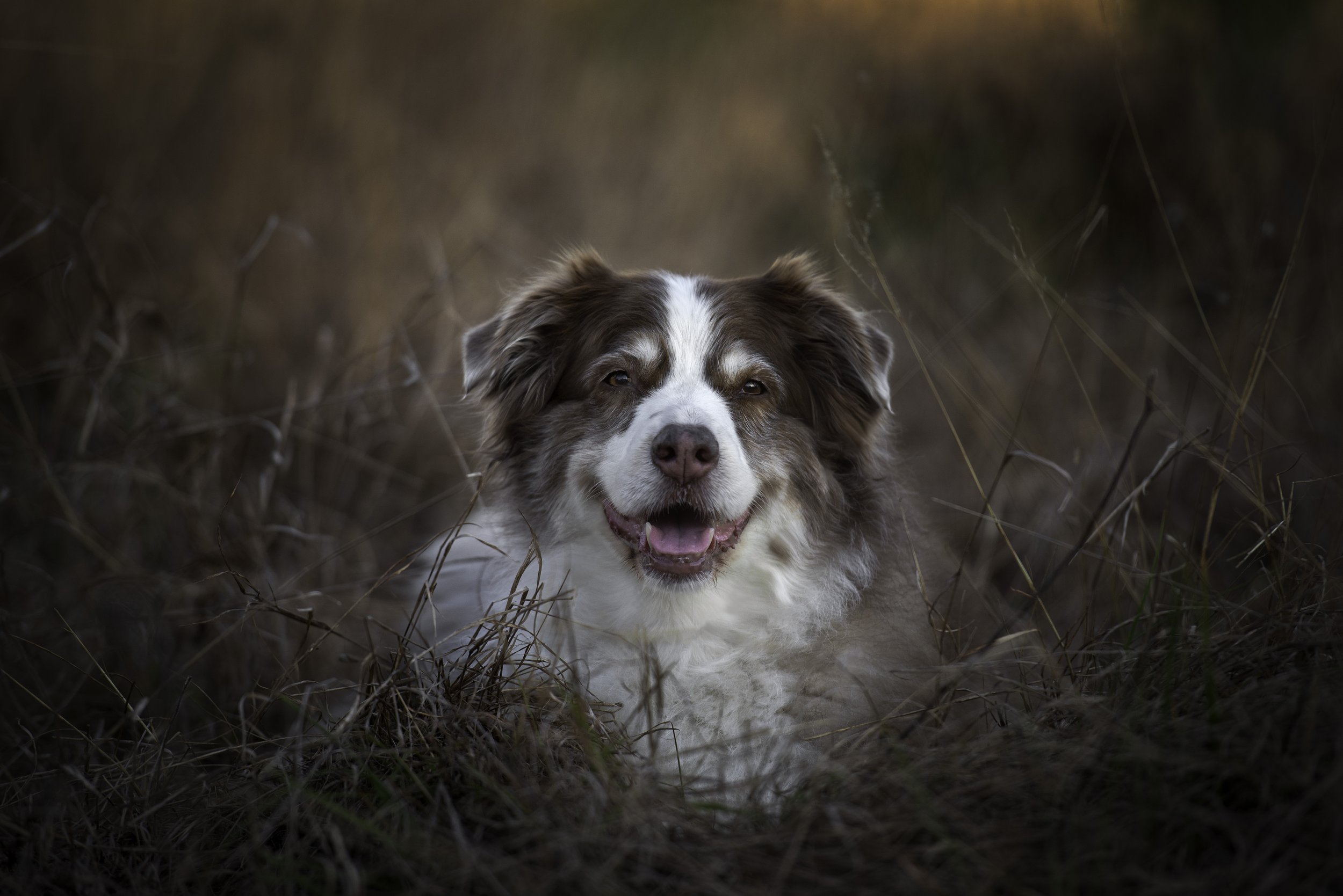 For this session, we went to this great little park near my home. I photographed Xena and her dog sibling, another Australian shepherd, Gracie here because it is a place they frequently go for walks. As I was photographing Gracie, I turned around to see Xena hanging out in the grass just like this watching us. She is very well trained, so her owner felt comfortable taking the leash off her. As an older dog, Xena doesn’t have an interest in taking off and running freely like she did in her puppyhood days.