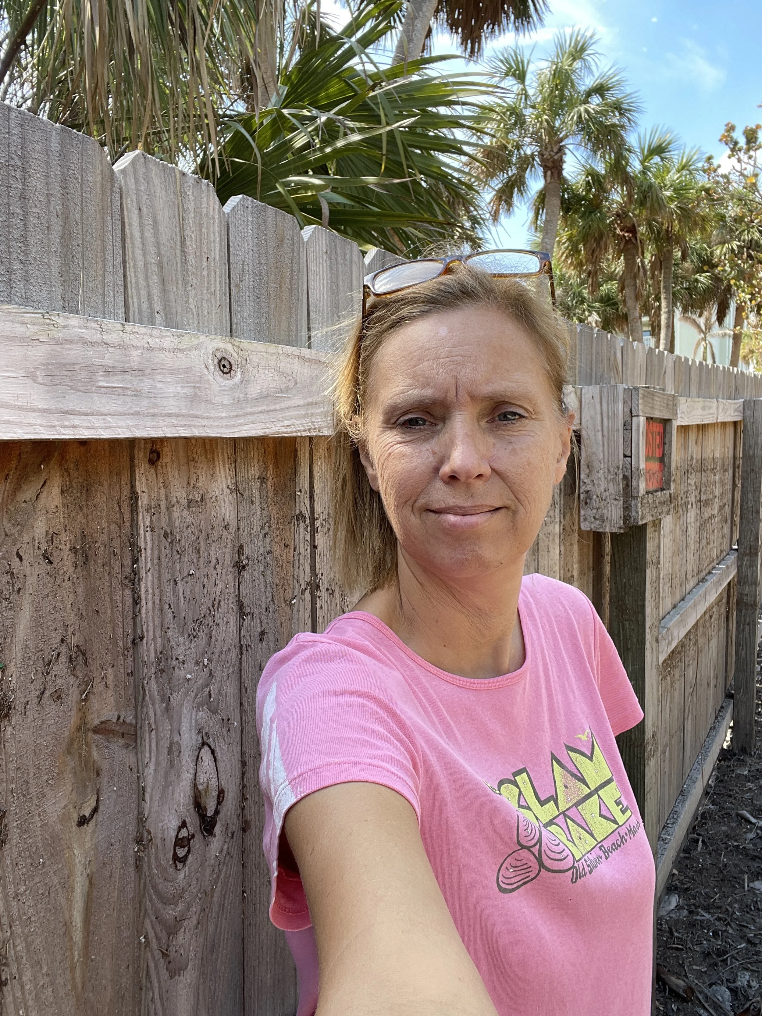 After a day of cleaning, I snapped quick selfie showing the water line from the surge on Manasota Key. Estimates are that 10 feet or more came in from the storm.